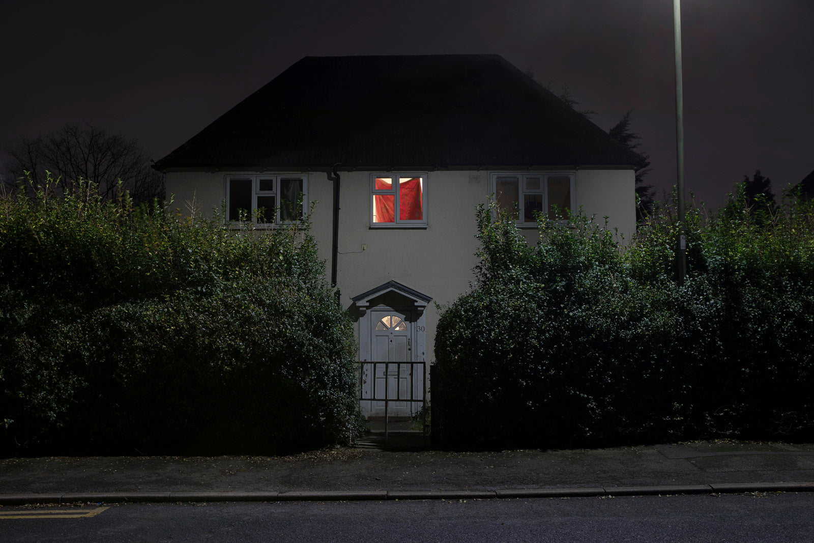 Red Curtain: From my Close To Home series, a collection of neighbourhood photographs taken at night.